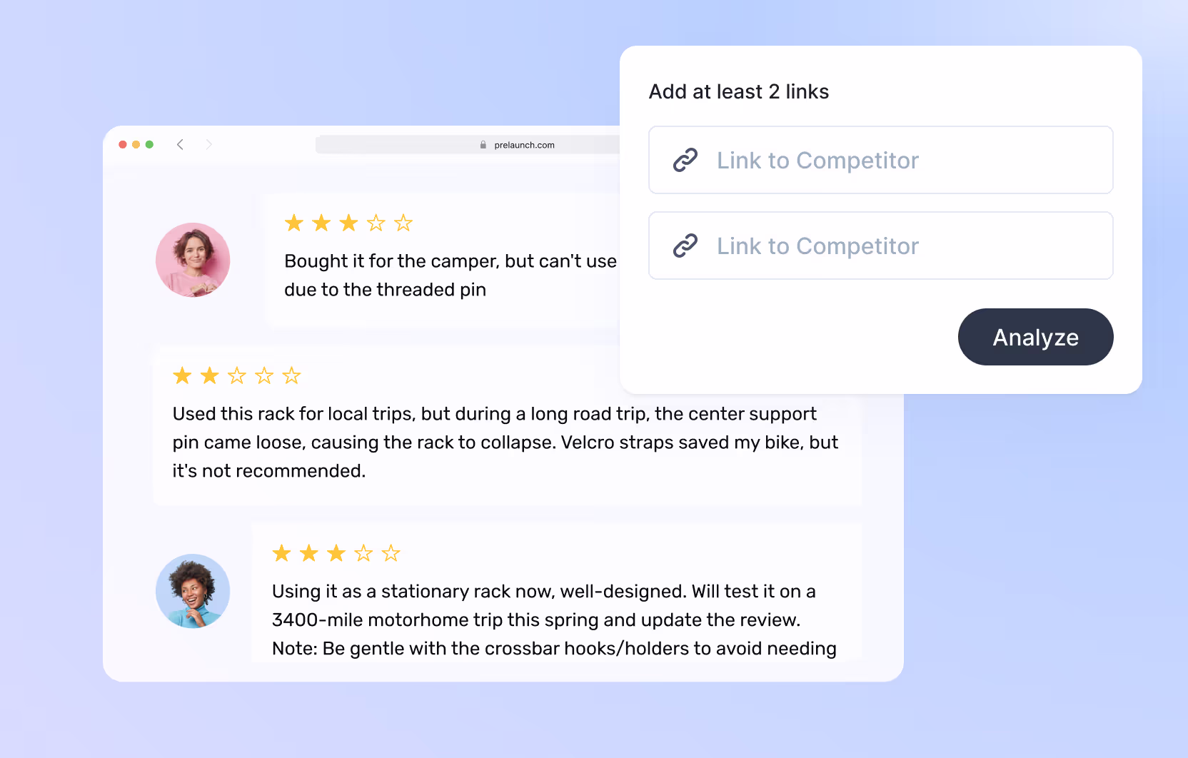 Analyze 1,000s of competitor reviews in seconds. Understand market sentiments and trends with AI-powered insights, and see what customers really love and hate about your competition.